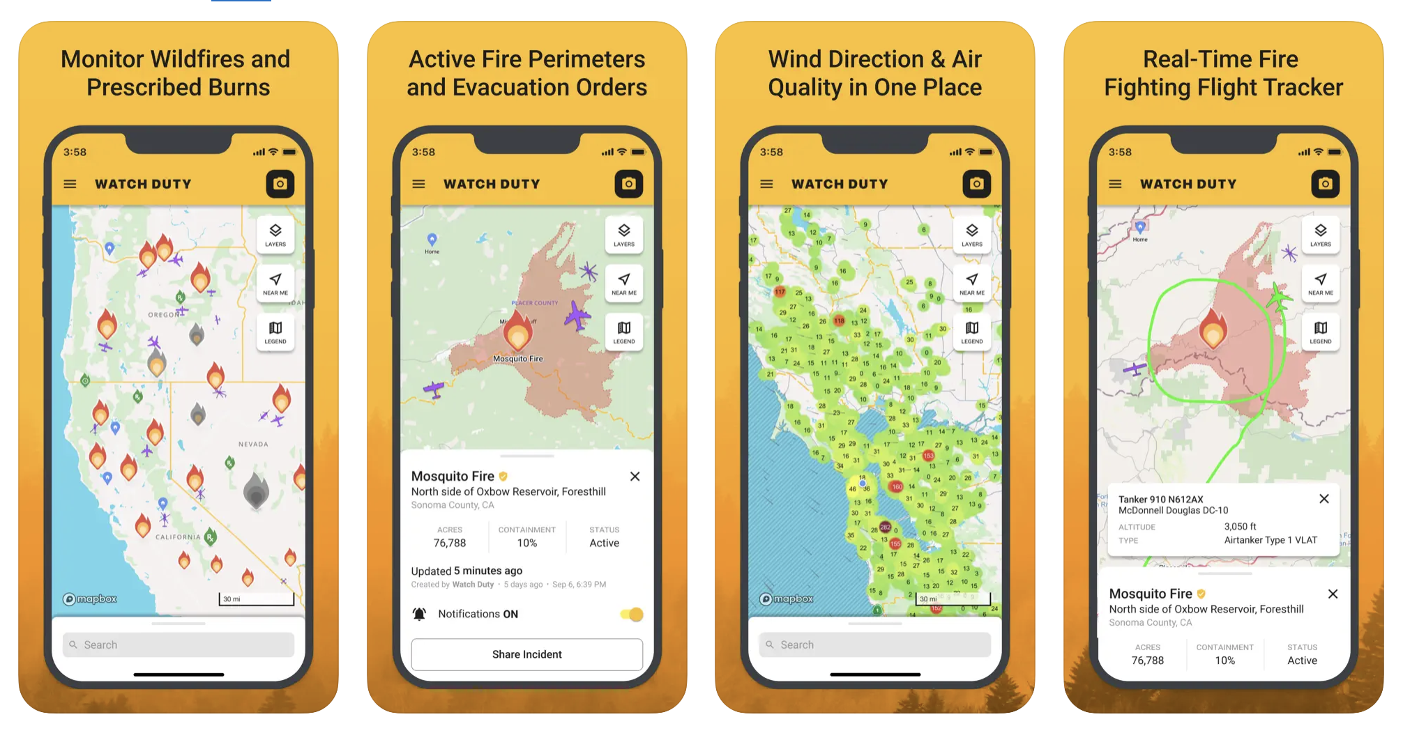 Watch Duty is a nonprofit mapping app that alerts users of nearby wildfires and firefighting efforts in real-time. You can download it wherever you get apps for your mobile device. Don’t have a mobile phone? No problem. Keep up to date on local wildfire activity via their website from your computer.